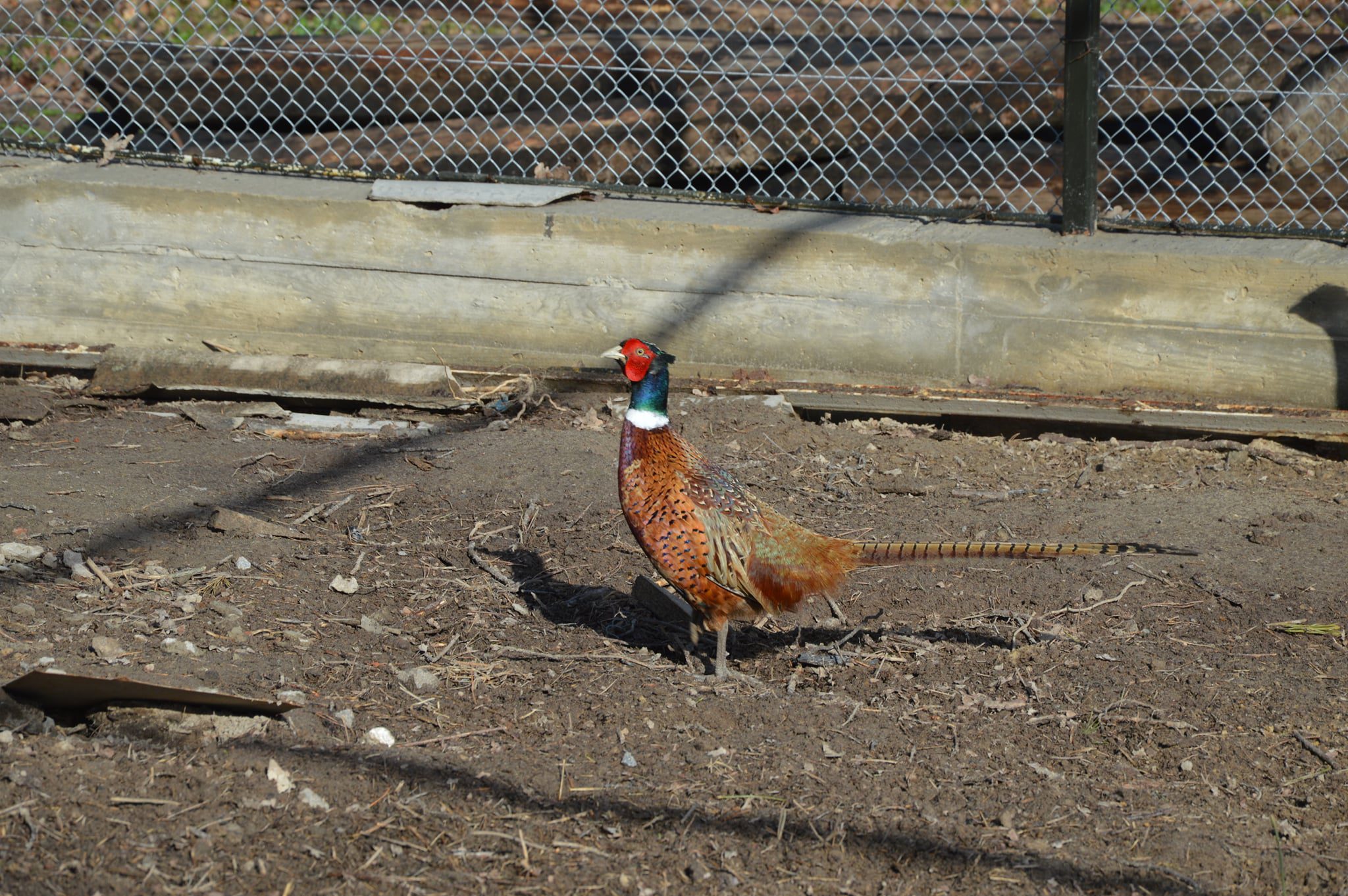 Вольер для пернатых достаточно высокий, просторный и накрытый сеткой. Его площадь достигает одного гектара. Об экзотических птицах здесь заботятся должным образом. Лесовики опекают птичками и обустроили для них уютные домики, в которых фазаны ночуют. Также на территории вольера установили кормушки. Фазаны питаются кукурузой и пшеницей. Пищевые птицы лесоводы самостоятельно выращивают и заготавливают. Каждый день фазан съедает от 70 до 100 г зерна.
